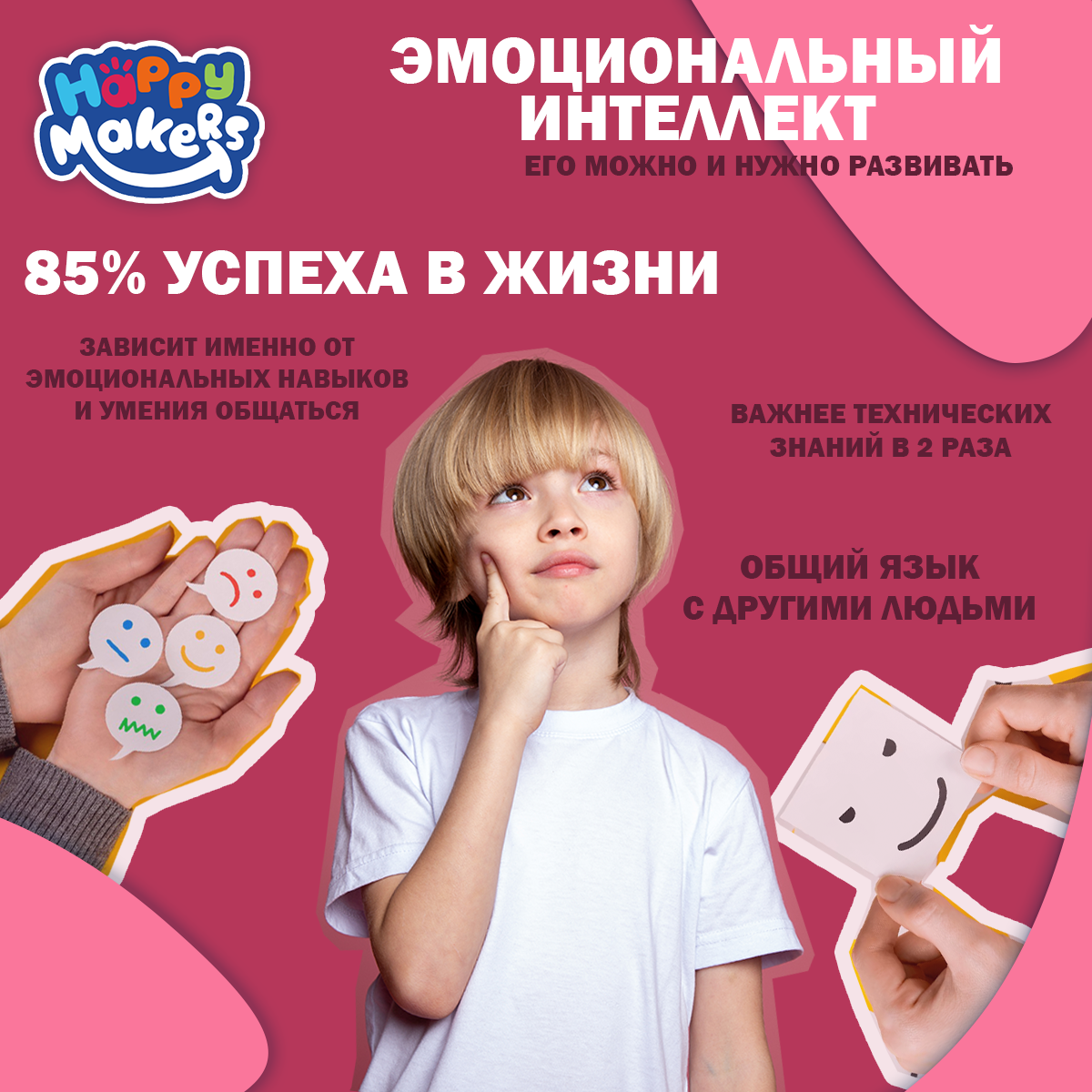 ΠΎΠ΄ΠΈΡΡ ΠΎΠ±ΡΠΈΠΉ ΡΠ·ΡΠΊ Ρ Π΄ΡΡΠ³ΠΈΠΌΠΈ Π»ΡΠ΄ΡΠΌΠΈ. ΠΠΎΡΠ΅ΠΌΡ ΡΡΠΈ Π½Π°Π²ΡΠΊΠΈ Π²Π°ΠΆΠ½Ρ Π΄Π»Ρ Π΄Π΅ΡΠ΅ΠΉ? Π§Π΅ΠΌ ΠΏΠΎΠΌΠΎΠ³Π°Π΅Ρ ΡΠ°Π·Π²ΠΈΡΡΠΉ ΠΠ: β’ ΠΠΎΠΌΠΎΠ³Π°Π΅Ρ Π»ΡΡΡΠ΅ ΡΡΠΈΡΡΡΡ ΠΈ Π΄ΠΎΡΡΠΈΠ³Π°ΡΡ ΡΠ΅Π»Π΅ΠΉ β’ Π£ΡΠΈΡ ΠΏΡΠ°Π²ΠΈΠ»ΡΠ½ΠΎ ΡΠ΅Π°Π³ΠΈΡΠΎΠ²Π°ΡΡ Π½Π° ΠΊΡΠΈΡΠΈΠΊΡ β’ Π Π°Π·Π²ΠΈΠ²Π°Π΅Ρ Π»ΠΈΠ΄Π΅ΡΡΠΊΠΈΠ΅ ΠΊΠ°ΡΠ΅ΡΡΠ²Π° β’ ΠΠ΅Π»Π°Π΅Ρ ΠΎΠ±ΡΠ΅Π½ΠΈΠ΅ Ρ Π΄ΡΡΠ·ΡΡΠΌΠΈ Π±ΠΎΠ»Π΅Π΅ ΡΡΠΏΠ΅ΡΠ½ΡΠΌ β’ Π‘Π½ΠΈΠΆΠ°Π΅Ρ ΡΠΈΡΠΊ ΠΏΠΎΡΠ²Π»Π΅Π½ΠΈΡ Π΄Π΅ΠΏΡΠ΅ΡΡΠΈΠΈ ΠΈ ΡΡΠ΅Π²ΠΎΠΆΠ½ΠΎΡΡΠΈ Π Π°Π·Π²Π΅Π½ΡΠΈΠ²Π°Π΅ΠΌ ΠΌΠΈΡΡ: β "ΠΠΌΠΎΡΠΈΠΎΠ½Π°Π»ΡΠ½ΡΠΉ ΠΈΠ½ΡΠ΅Π»Π»Π΅ΠΊΡ β ΡΡΠΎ Π²ΡΠΎΠΆΠ΄ΡΠ½Π½ΡΠΉ ΡΠ°Π»Π°Π½Ρ" β ΠΠ° ΡΠ°ΠΌΠΎΠΌ Π΄Π΅Π»Π΅ Π΅Π³ΠΎ ΠΌΠΎΠΆΠ½ΠΎ ΠΈ Π½ΡΠΆΠ½ΠΎ ΡΠ°Π·Π²ΠΈΠ²Π°ΡΡ β "ΠΠ»Π°Π²Π½ΠΎΠ΅ β ΡΡΠΎ Π²ΡΡΠΎΠΊΠΈΠΉ IQ" β ΠΡΡΠ»Π΅Π΄ΠΎΠ²Π°Π½ΠΈΡ ΠΏΠΎΠΊΠ°Π·ΡΠ²Π°ΡΡ, ΡΡΠΎ ΡΠΌΠΎΡΠΈΠΎΠ½Π°Π»ΡΠ½ΡΠΉ ΠΈΠ½ΡΠ΅Π»Π»Π΅ΠΊΡ Π²Π°ΠΆΠ½Π΅Π΅ ΡΠ΅Ρ