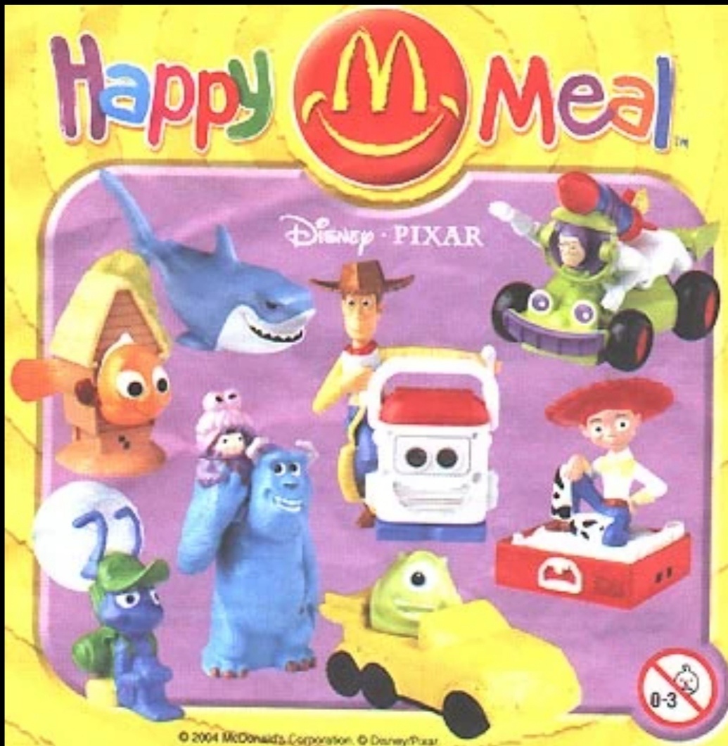 Само название говорит о том , что в этой серии представлены различные персонажи из мультфильмов студии Disney-Pixar. В 2004 году McDonald's предлагает нам 8 фигурок из таких популярных диснеевских мультфильмов как: Немо, История игрушек, Корпорация Монстров и Приключения Флика. И так, наши герои: 1. Акула Бугор или Брюс (мульт. Немо) 2. Рыбка Немо (мульт. Немо) 3. Баз Лайтер (мульт. История игрушек) 4. Вуди (мульт. История игрушек) 5. Джесси (мульт. История игрушек) 6. Флик (мульт. Приключения Флика) 7. Сали и Бу (мульт. Корпорация монстров) 8. Майк Вазовский (мульт. Корпорация монстров) В моей коллекции из этой серии есть следующие игрушки: Другие похожие серии: Если интересуют другие игрушки из McDonald's , то переходим на Главную страницу