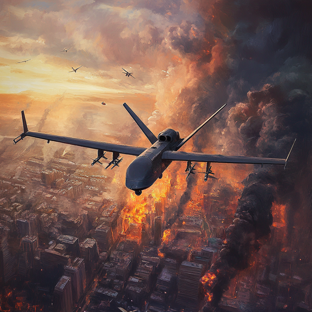 В настоящее время беспилотники в силу понятных причин у многих людей, к сожалению, ассоциируются далеко не только с мирными миссиями. Поэтому нам стала интересно: как атаку БПЛА представляют себе нейросети. Задав соответствующий вопрос, мы получили от нейросети графический ответ из четырех иллюстраций, которые представлены в данном посте. Можно констатировать, что картинки получились весьма мрачные и атмосферные, хотя и не без технических огрехов. В будущем же интересно было бы показать, как нейросети видят мирное использование дронов. Следите за обновлениями в нашем канале.