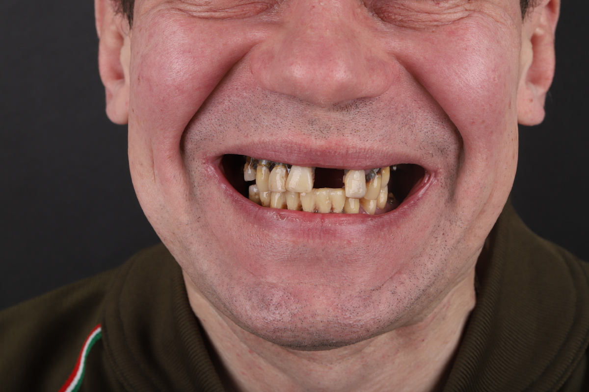 Процесс установки имплантатов начинается с тщательной диагностики и планирования, чтобы учесть индивидуальные особенности пациента. Было принято решение провести имплантацию по системе all-on-x. На верхней челюсти установили 5 имплантатов, на нижней – 6. Перед этим у пациента удалили все зубы, потому что восстановлению они уже не подлежали. После хирургического вмешательства, которое обычно проходит под местной анестезией, имплантаты интегрируются с костью и обеспечивают надежную опору для коронок. На имплантаты пациенту закрепили сначала временные несъемные протезы, а затем заменили их на постоянные. Результат — естественная, привлекательная улыбка, которая восстанавливает не только эстетику, но и уверенность в себе. Пациенты отмечают улучшение качества жизни: возможность полноценно жевать, говорить и улыбаться без стеснения. Современные технологии и материалы делают имплантацию безопасной и долговечной, а профессиональный подход стоматолога гарантирует успешный результат. Преображени