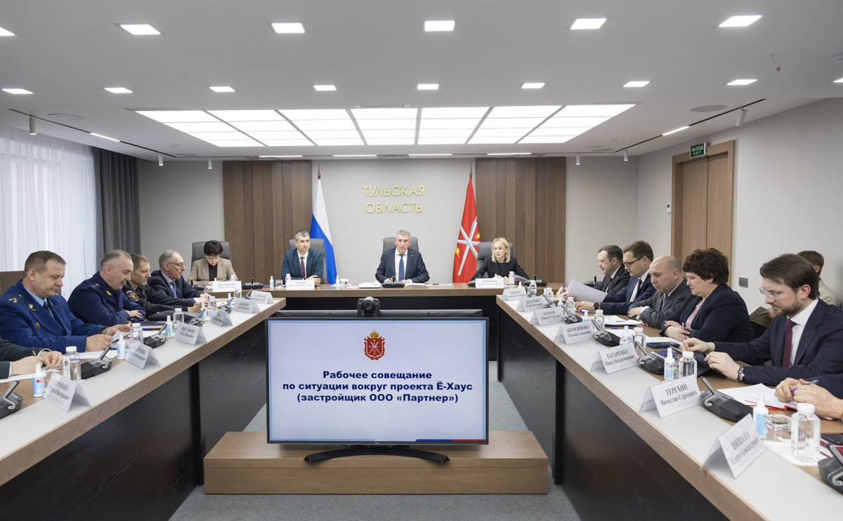 18 марта губернатор Дмитрий Миляев провел совещание по ситуации с компанией «Ё-Хаус». Более сотни туляков вложили деньги в строительство индивидуальных жилых домов, в том числе за счёт кредитов, но застройщик свои обязательства не выполнил. Люди дома не получили, оставшись с недостроями и обязательствами перед банками. *Компания ООО «Партнер» незаконно присвоила и использовала товарный знак «ЁХаус» в своем названии и указывала его при размещении информации о себе. Правообладатель товарного знака — питерская компания ООО «ЁХАУС» — не имеет отношения к тульскому застройщику и не имеет филиалов и представительств в Тульской области. Дмитрий Миляев встретился с представителями правоохранительных органов, банков и членами регионального правительства. На совещании обсудили принятые меры и предложения по улучшению положения пострадавших. Начальник УМВД России по Тульской области Андрей Даценко сообщил о принятых ведомством мерах. 135 пострадавших обратились с заявлениями в полицию, их уголовн