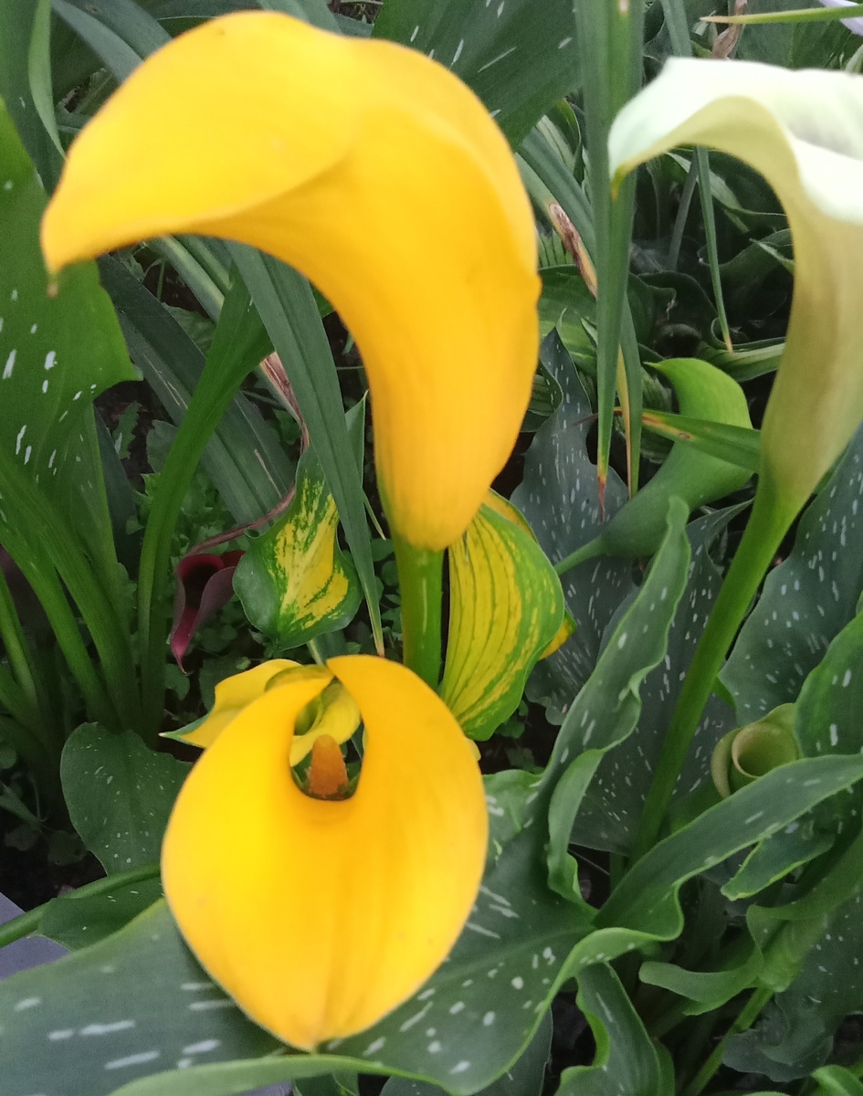 Это растение с элегантными цветами и яркими листьями выглядит просто шикарно. Это многолетнее травянистое растение родом из Южной Африки. Оно известно своими разноцветными цветами, напоминающими воронку. Листья у него крупные, темно - зелёные, иногда с пятнами. Цветы могут быть разных оттенков : белые, розовые , жёлтые , фиолетовые и даже почти чёрные . Высота обычно достигает 60 - 90 см . Высокие хорошо будут смотреться на заднем плане клумбы , а низкорослые -в качестве бордюра могут создать вид.Цветение обычно с начало лета до осени ( в зависимости от региона )Они привлекают взгляды прохожих и радуют владельцев своим долгим цветением. Корни : клубневые , что делает их удобными для хранения зимой . Хранятся в прохладном темном месте. Саженцы легко адаптируются в грунте. Уход за каллами не потребует много усилий. Предпочитают лёгкий грунт с хорошей дренажной способностью. Главное - чтобы вода не застаивалась , иначе корни могут загнить .И ещё корни требуют особого внимания при пересад