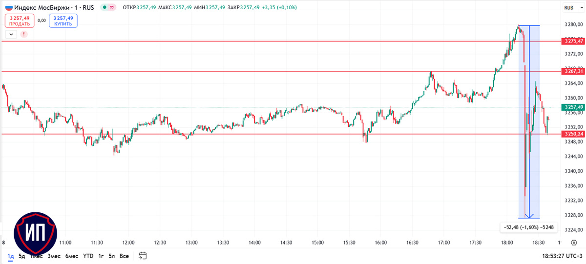 Π£ΠΆΠ΅ ΠΏΠΎΡΠ»Π΅ Π½Π°ΡΠ°Π»Π° ΡΠ΅Π»Π΅ΡΠΎΠ½Π½ΠΎΠ³ΠΎ Π·Π²ΠΎΠ½ΠΊΠ° ΠΏΠΎΡΠ»Π΅ 18:00 ΡΡΠ½ΠΎΠΊ ΡΠ΅Π·ΠΊΠΎ ΠΎΠ±Π²Π°Π»ΠΈΠ» Π²Π΅ΡΡ Π½Π°ΠΊΠΎΠΏΠ»Π΅Π½Π½ΡΠΉ Π·Π° Π΄Π΅Π½Ρ ΡΠΎΡΡ, Π½ΠΎ ΠΏΠΎΡΠΎΠΌ ΡΠ°ΠΊΠΆΠ΅ ΡΠ΅Π·ΠΊΠΎ Π²Π΅ΡΠ½ΡΠ» ΡΠ²ΠΎΠΈ ΠΏΠΎΠ·ΠΈΡΠΈΠΈ, ΡΡΠΎ Π² ΠΈΡΠΎΠ³Π΅ ΠΏΡΠΈΠ²Π΅Π»ΠΎ ΠΊ ΡΠΎΡΡΡ ΠΈΠ½Π΄Π΅ΠΊΡΠ° ΠΠΎΡΠΊΠΎΠ²ΡΠΊΠΎΠΉ Π±ΠΈΡΠΆΠΈ Π½Π° +0,38% Π΄ΠΎ 3257,49 ΠΏΡΠ½ΠΊΡΠ°. Π‘ΠΏΠ΅ΠΊΡΠ»ΡΠ½ΡΡ Π΄ΠΎ ΠΏΠΎΡΠ»Π΅Π΄Π½Π΅Π³ΠΎ ΠΏΠΎΠΊΡΠΏΠ°Π»ΠΈ Π°ΠΊΡΠΈΠΈ, ΡΡΠΎΠ±Ρ ΡΠ±ΡΠΎΡΠΈΡΡ ΠΈΡ ΠΊΠ°ΠΊ ΡΠ°Π· ΠΏΠ΅ΡΠ΅Π΄ Π½Π°ΡΠ°Π»ΠΎΠΌ ΡΠ΅Π»Π΅ΡΠΎΠ½Π½ΡΡ ΠΏΠ΅ΡΠ΅Π³ΠΎΠ²ΠΎΡΠΎΠ².