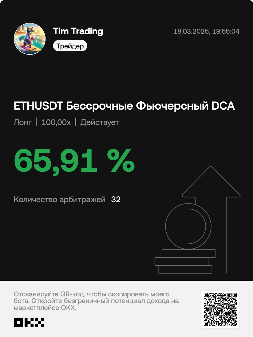 Фьючерсные DCA-боты – это мощный инструмент для автоматизированной торговли, который помогает снизить риски и стабильно зарабатывать на волатильности криптовалют. В этой статье разберём, как работают DCA-боты на фьючерсах, какие стратегии использовать, и поделимся прибыльным ботом, который можно скопировать. DCA (Dollar-Cost Averaging) – это стратегия усреднения стоимости покупки, при которой актив приобретается частями через равные промежутки времени. 📌 Фьючерсные DCA-боты используют этот же принцип, но вместо спотовых покупок работают с фьючерсными контрактами, зарабатывая не только на росте цены, но и на падении за счёт лонгов и шортов. 1️⃣ Бот открывает первую сделку на основе настроек стратегии.