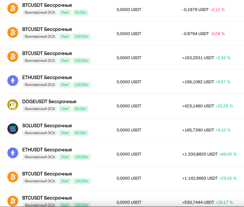 Криптовалютный рынок нестабилен и требует постоянного мониторинга, но есть решение, которое позволяет зарабатывать в автоматическом режиме – DCA-боты для фьючерсов. Я создаю прибыльных ботов, которых можно скопировать и запустить за несколько кликов. Они уже настроены, протестированы и приносят доход! DCA (Dollar-Cost Averaging) – это стратегия усреднения, при которой покупка или продажа актива происходит частями через равные промежутки времени. 📌 Фьючерсные DCA-боты позволяют: ✅ Торговать 24/7 в автоматическом режиме