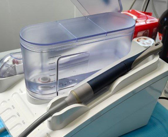 При проведении данной процедуры происходит эффективная обработка пародонтальных карманов глубиной до 10 мм. За счет сочетания действий ультразвуковой волны и специальной суспензии удаляются поддесневые зубные отложения, полируется поверхность корней, количество микроорганизмов значительно сокращается.