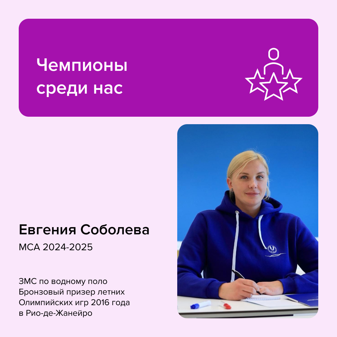 Евгения Соболева https://vk.com/id307247363 ― заслуженный мастер спорта по водному поло, бронзовый призер Олимпиады-2016, многократная чемпионка мира и Европы. Казалось бы, можно расслабиться. Но Евгения решила иначе: она поступила в РМОУ. Зачем? «Спортивная карьера — это не навсегда. Важно понимать, что дальше. В РМОУ я учусь спортивному менеджменту, управлению проектами, коммуникации. Это то, что поможет мне после спорта», — говорит Евгения. Почему выбрала РМОУ? Преподают эксперты спортивной индустрии с реальным опытом. Здесь учат управлять проектами, работать в команде и находить себя за пределами профессионального спорта. Университет объединяет студентов со всего мира, создавая крутые возможности для обмена опытом. Гранты от Фонда поддержки олимпийцев России делают обучение доступнее. «Конкуренция за грант была высокой, и я переживала, что не получу. Но решила попробовать — и теперь понимаю, что это был правильный шаг», — говорит Евгения. #рмоу #riou #рмоусочи #рмоу_студенты #спор