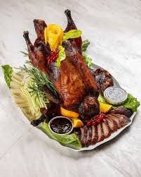 Утка по-пекински — это знаменитое китайское блюдо, известное своим хрустящим кожей и нежным мясом. Вот подробный рецепт, который поможет вам приготовить это блюдо дома. ▎Ингредиенты: ▎Для утки: • 1 утка (около 2-3 кг) • 2 ст. ложки меда • 2 ст. ложки соевого соуса • 1 ст. ложка рисового уксуса или белого уксуса • 1 ч. ложка пяти специй (порошок из китайских специй) • 1 ч. ложка соли • 1 ч. ложка черного перца ▎Для подачи: • Тонкие блинчики (можно купить готовые или сделать самостоятельно) • Зеленый лук (нарезанный) • Огурцы (нарезанные тонкими полосками) • Соус Хойсин ▎Приготовление: ▎Подготовка утки: 1. Очистка и подготовка: Убедитесь, что утка очищена от перьев и внутренностей. Промойте ее под холодной водой и обсушите бумажным полотенцем. 2. Маринация: В небольшой миске смешайте мед, соевый соус, рисовый уксус, пять специй, соль и черный перец. Обмажьте утку этой смесью как снаружи, так и внутри. Оставьте мариноваться на несколько часов, лучше на ночь в холодил