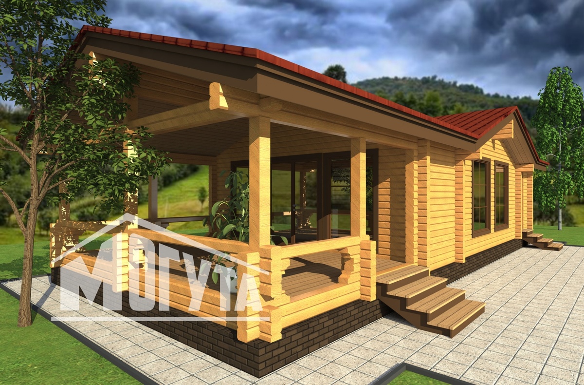 Проект банного комплекса из бруса от компании Могута отличается возможностью использования его в качестве гостевого дома или деревянного дома для сезонного проживания. Банный комплекс Душевный-75 от фирмы Могута с большой террасой позволяет проводить максимальное количество времени на свежем воздухе. При желании террасу можно застеклить или оформить декоративными шторами. Проект этого дома-бани из бруса включает в себя целый комплекс помещений: парная, душевая, санузел, топочная, дровник, кухня, комната отдыха – все, что нужно, чтобы отдохнуть большой компанией в кругу родных и близких людей. Потолки в этом банном комплексе подшиваются прямо по стропилам, поэтому их высота постоянно меняется. Среднее значение – 2,5 метра. В парной и душевой потолки дополнительно утеплены и высота их не больше 2,2 метра. Компания Могута https://могута.рф создает проекты бань и банных домов более 7 лет. Мы занимаем лидирующие позиции на рынке деревянного домостроения, проектирования и строительства ба