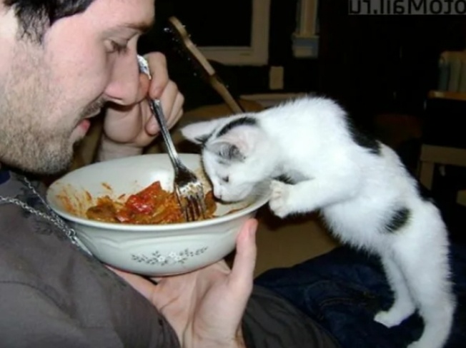 Кошка уже научилась понимать и разгадывать поведение своего хозяина. Мурлыка может улавливать движение руки с ложкой или вилкой, замечать, как вы кладете в рот кусочки еды и сопоставлять эти действия с процессом приема пищи.