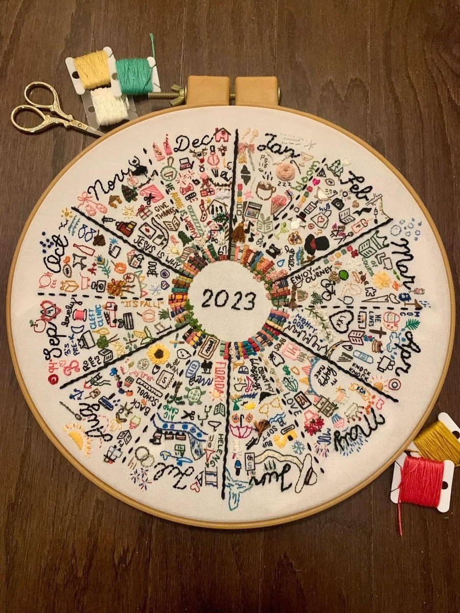 Случайно нашла идею для вышивки. Пинтерест это «бездонная яма». Можно убить очень много времени в нём. Нашла там вот такого формата вышивку и совершенно забыла как это называется. Календарь настроения(как-то так).Таким же способом вяжут пледы, тоже получается интересно! Делить можно так, как захочется-по месяцам или по неделям, а можно и по дням. Один день-один цвет под настроение или впечатления от дня. Так же и неделя/месяц. Но одно дело вязание, другое вышивка! Можно детализировать события за месяц, как показано на фото/картинках. Разглядывать интересно каждую деталь. Сердечки, надписи, маленькие здания, предметы одежды и тд. Есть где разгуляться фантазии! Захватывающе! И таким образом получается «календарь» настроения за год. Интересная конечно задумка, но я не хотела бы такой процесс затевать. Делитесь мнением, не стесняйтесь! Может вы уже делали подобное?
