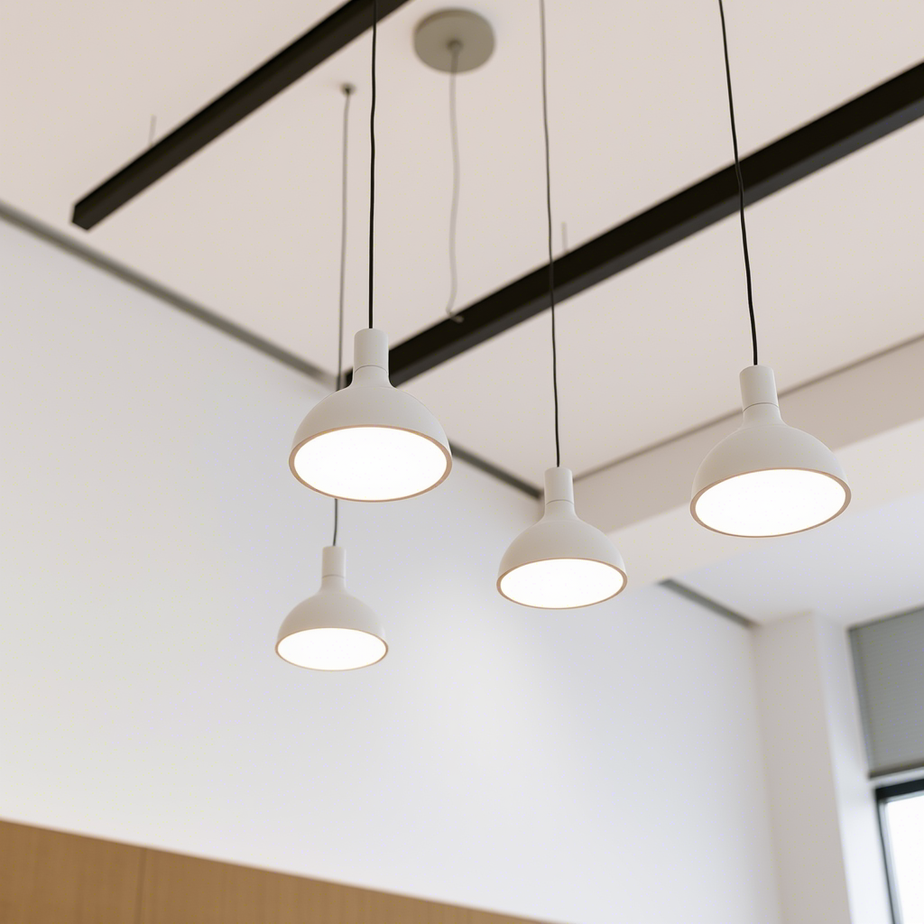 На кухне подвесные светильники часто используются для освещения обеденной зоны или барной стойки. Они создают уютную атмосферу и подчеркивают стиль интерьера. Для кухни лучше выбирать модели с плафонами из стекла или металла, так как они легко моются и устойчивы к загрязнениям. Также важно, чтобы светильник не мешал передвижению по кухне, поэтому его высота должна быть тщательно отрегулирована.