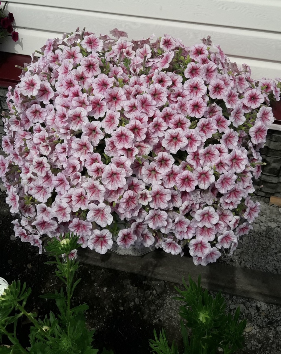 Те, кто говорит, что выращивать петунию "проще простого", слегка лукавят. Если так было на самом деле, то не возникало столько вопросов. Но почему тогда лукавят всего-то слегка? Все просто: через два-три сезона у каждого желающего получится вырастить вместо гадкого утенка прекрасного лебедя. То есть вместо двух-трех веток с одиночными цветками получить цветущий шар. Вот фотография читательницы. Красота же?! Надо сказать честно, что не из каждого сорта можно получить вот такую красоту. Из пакетика за двадцать рублей такую красоту не сотворить. Может, есть умельцы, конечно, утверждать не буду. А вот наоборот - запросто. Даже профессиональные семена, каждое зернышко которого стоит не один десяток рублей, еще не гарантия шапочного цветения. Есть сорта, в которые на генетическом уровне заложено выбрасывать огромные плети. Надо заставить растения нарастить много побегов, сформировав на начальном этапе пышный кустик. Для этого растения необходимо прищипывать. Прищипывание - удаление точки