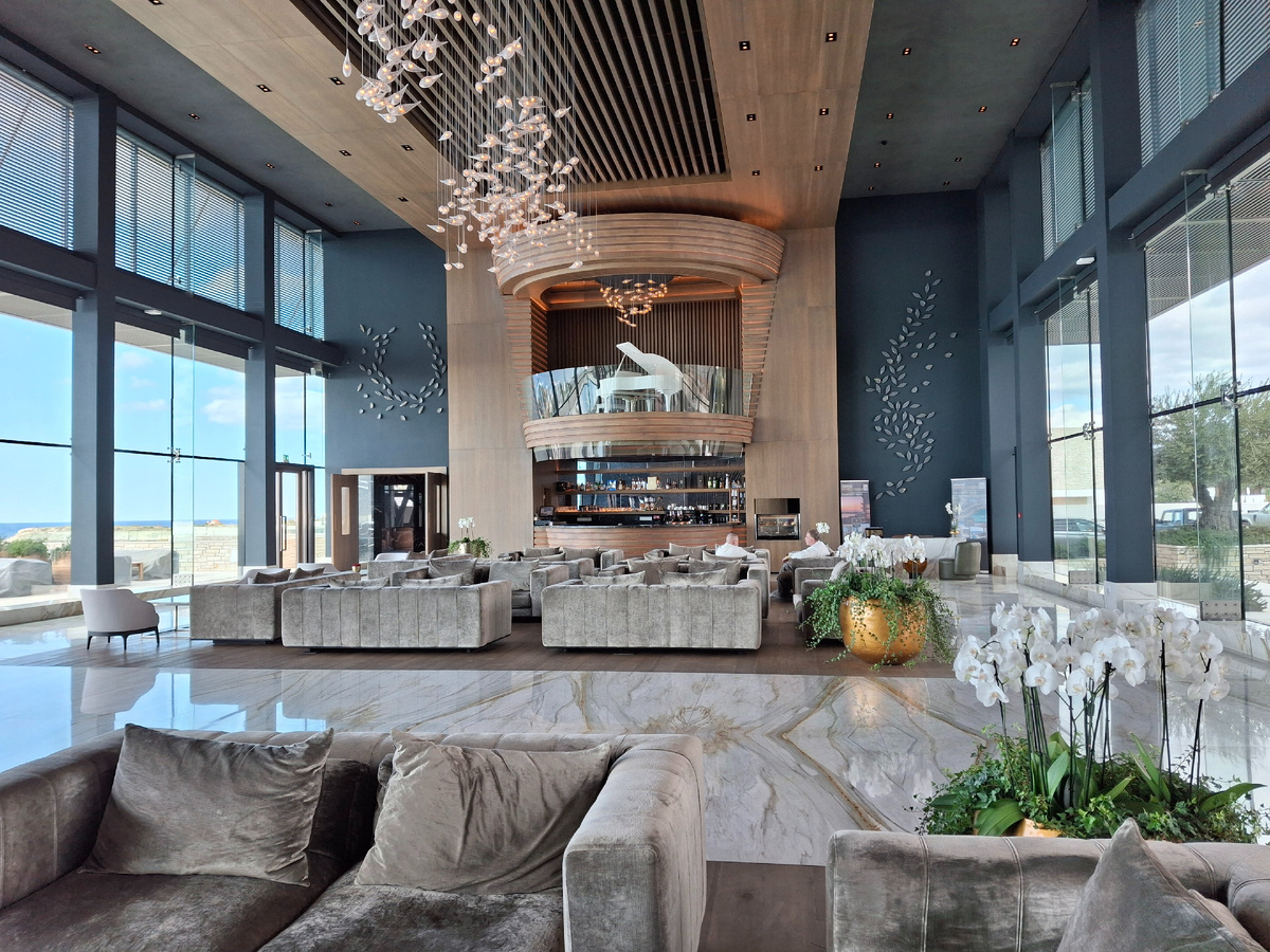 Из аэропорта Ларнаки приехали в Пафос в отель "Cap St Georges". Холл отеля, где ресепшн. Напиток с огурцом. Освежающий :) Наш номер. Заходим. Окно в ванную комнату. Стекло делается матовым, можно нажать кнопочку. Но все равно... Дверь в ванную комнату стеклянная. В туалет и душ двери стеклянные тоже. Вид в комнату. Есть кофемашина и чайник. Свой бассейн. Номер шикарный. Но мне эта новая мода на стеклянные двери совсем не нравится.