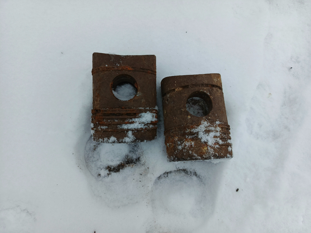 Всем привет! Хоть в этом году зима была и довольно мягкая, февраль выдался снежным и морозным. На металлокоп особо не сходишь — все под снегом и земля промёрзла достаточно глубоко. Просидел я дома практически весь месяц. И чтобы совсем не помереть со скуки, решил съездить в деревню, подготовить к сдаче алюминиевые поршни, которые я нашёл накануне, и обжечь некоторые провода и медные катушки. Два алюминиевых поршня, скорее всего от какого-то трактора, нашёл я еще в январе, во время одной из моих прогулок. Снег тогда еще не лежал, и земля была совсем даже не промерзшая. Весил каждый поршень по 3 килограмма. За два получается 6. Весьма неплохой результат. Но вот только в эти поршни вставлены железные кольца. Их надо как-то оттуда извлечь. Иначе поршни на приемке как алюминий просто не возьмут. Сначала попробовал распилить эти кольца болгаркой. Но они все равно никак не хотели вылазить. Тогда я взял зубило и молоток и начал их просто выбивать. Вдвоем с тестем нам удалось выбить все железо