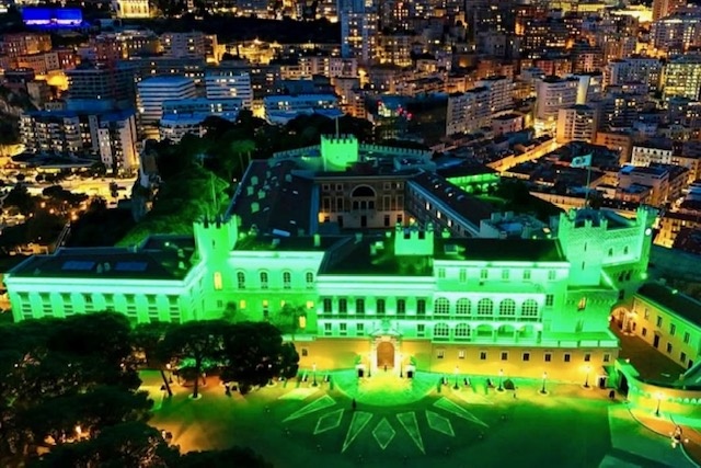 17 марта княжество Монако утонуло в изумрудном свете: фасады зданий, в том числе княжеский дворец, подсветили в честь Дня Святого