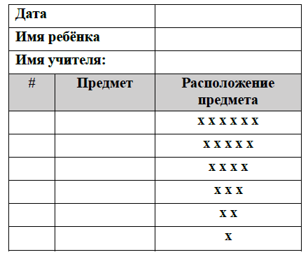 - В таблице напишите какие предметы у вас будут лежать по очереди справа налево
