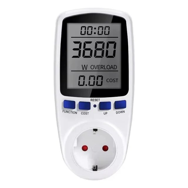 Цифровой ваттметр для розетки — это прибор, предназначенный для измерения потребления электроэнергии в реальном времени. Он подключается к электросети через стандартную розетку, а устройства — через него. Прибор может отображать такие параметры, как мощность (в ваттах), ток (в амперах), напряжение (в вольтах) и общее потребление электроэнергии (в киловатт-часах). Это позволяет пользователю не только отслеживать текущие затраты, но и анализировать эффективность работы приборов, что способствует снижению затрат на энергопотребление.