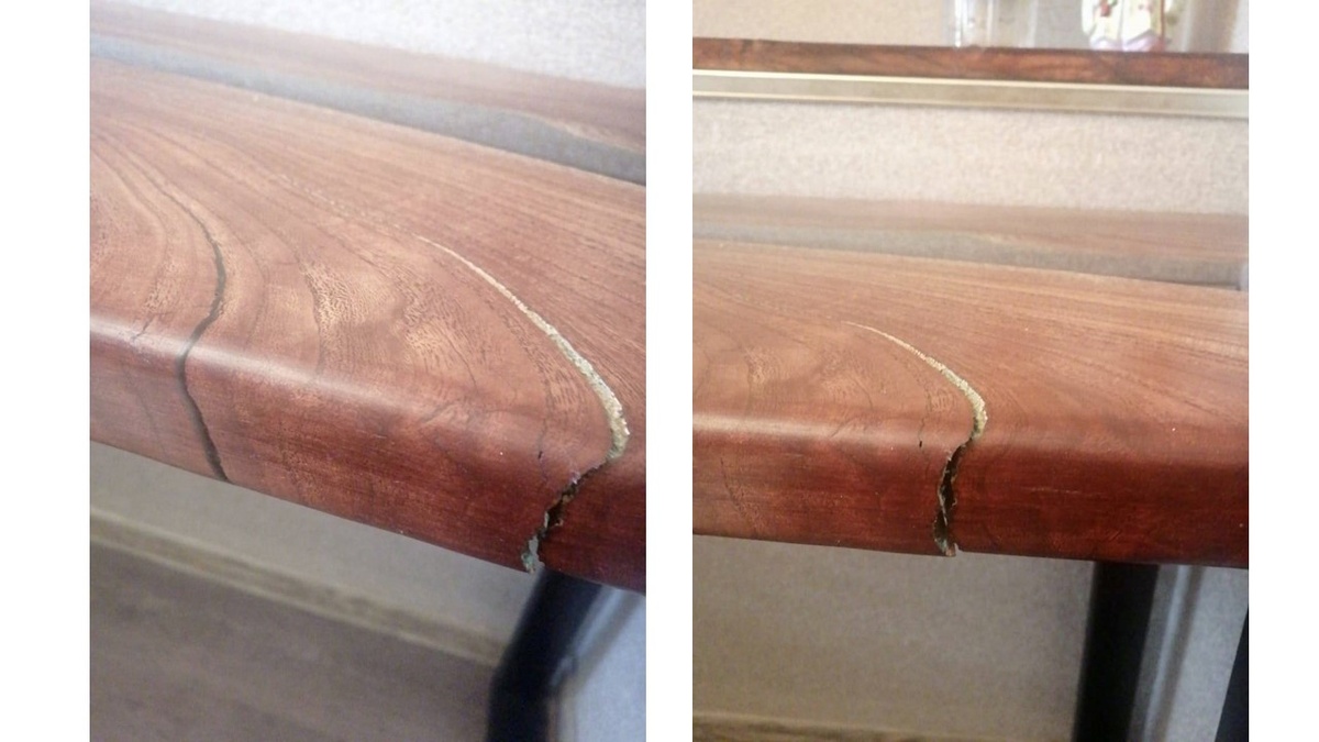 Работаю с массивом уже восемь лет, такого ещё не припомню. Клиент прислал фото, что на столешнице появилась трещина спустя месяц. Хотел было сразу ответить, что поперек доска сама по себе не трескается, да еще и со смещением вниз-такого я вообще не припомню. Продольные трещины, бывало, появлялись, но очень редко, поскольку это карагач, у него свилеватая структура, он в целом довольно стабилен. Но смутило, что левее есть похожая трещина, залитая смолой. Опять же, если бы лопнула она, вопросов бы не было, а тут рядом, без какой-либо заливки, цельная древесина. Как выдумаете, могла ли появиться такая трещина самостоятельно или заказчик всё-таки присел-встал на столешницу, а сейчас пытается мне предъявить, что "оно само"? Судя по вашему описанию ситуации, действительно сложно сразу определить причину появления трещины. Однако несколько факторов могут помочь разобраться в этом вопросе: Исходя из всего вышеперечисленного, наиболее вероятной причиной появления трещины кажется механическое