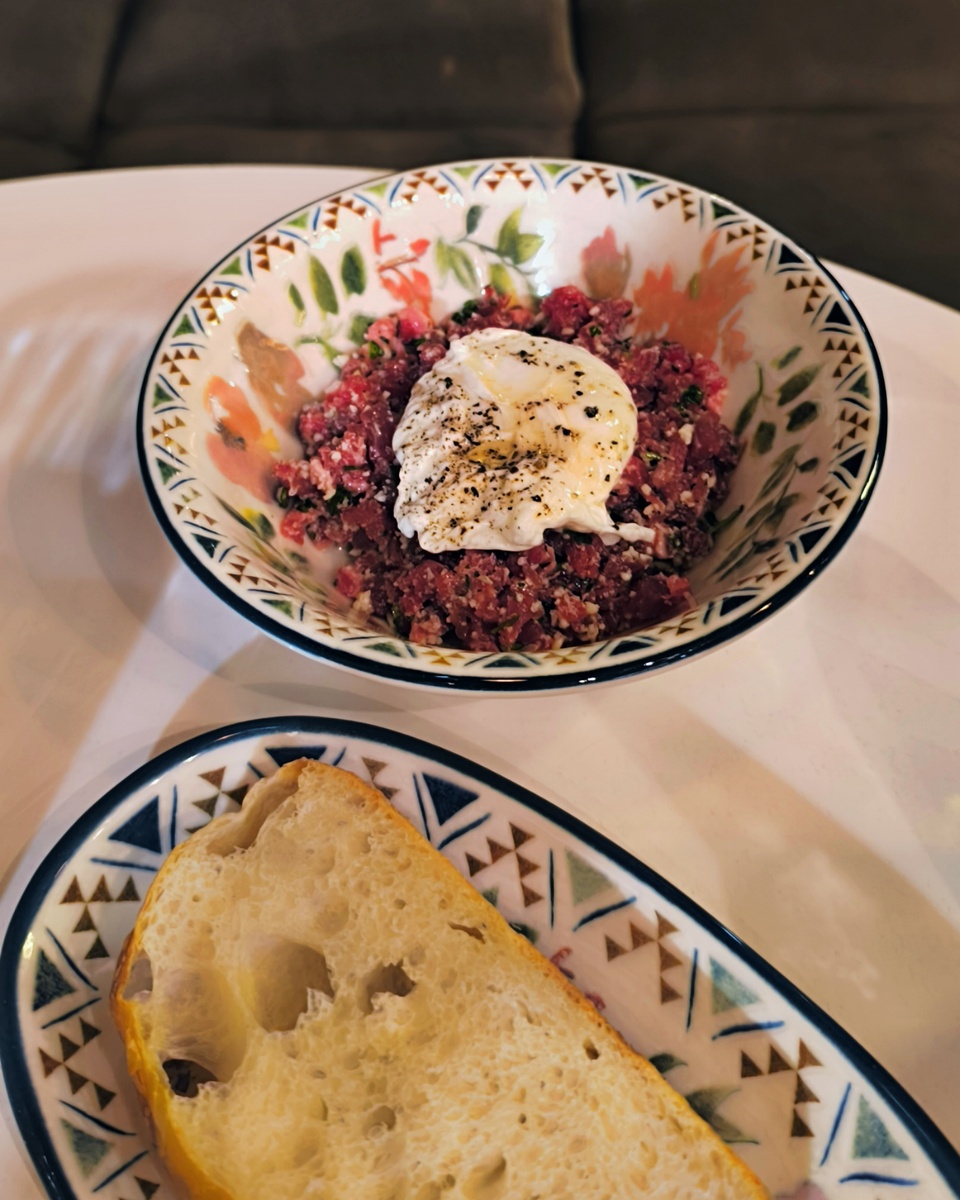 Волею судеб и насмотревшись вкусных историй, намедни отправились пробовать уже знаменитые тартары из говядины в Vinch. Тартар с яйцом пашот, трюфельным маслом и чиабаттой