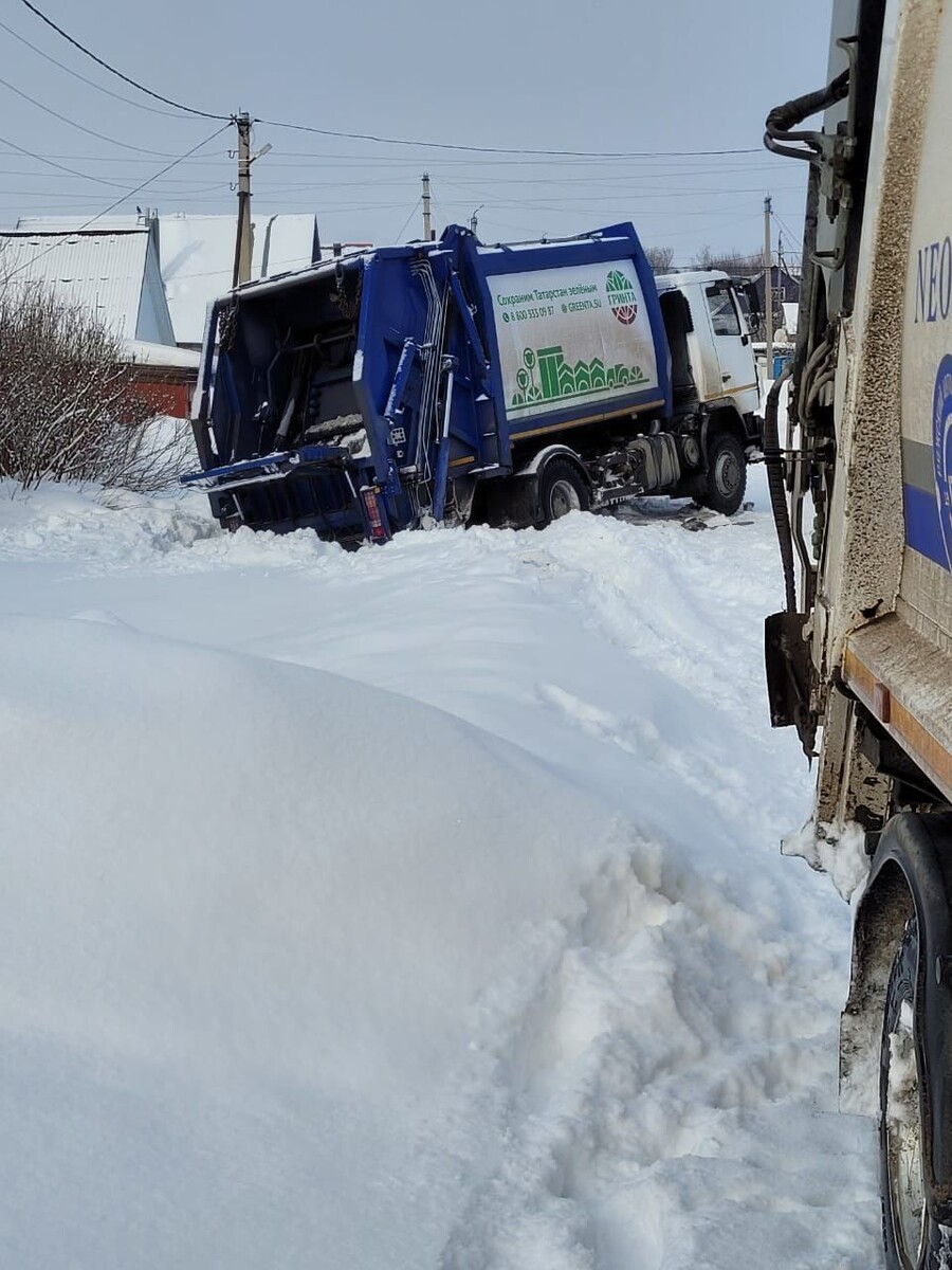 «Гринта» показала, как мусоровоз провалился и застрял в рыхлом весеннем снегу