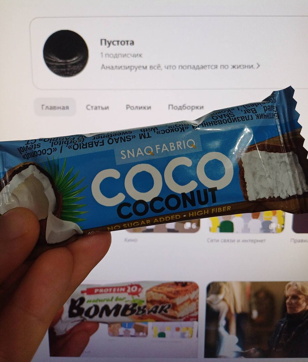 Сегодня у нас на обзоре батончик Coco coconut от бреда Snaq Fabriq (производитель ООО "Бомбар"), данный батончик в розницу можно купить в Красном и Белом, Чижике и прочих масс-маркетах за стоимость около 60-ти рублей. Из одной порции батончика весом в 40 грамм мы получаем следующее: 162 ккал, 2.8 грамм белка, 12 грамм жира, 2.9 грамм углеводов и 16 грамм пищевых волокон. Данный батончик отлично дополнит основной рацион питания на КЕТО-диете. Хотя я его использую и на низкоуглеводной классической диете с большим количеством белка, как источник жира. Благодаря кокосу, мы получим много полезного из этого батончика, а из недостатков высокую питательную ценность т.е. высокую калорийность. Содержит полезные жиры: насыщенные жиры, мононенасыщенные и полиненасыщенные. В состав кокосовой стружки входят группы витаминов Е, А, В, С, представленные аскорбиновой кислотой, биотином и токоферолом. Из микро- и макроэлементов больше всего содержится следующих (в мг): марганца (2,4), калия (230), натрия