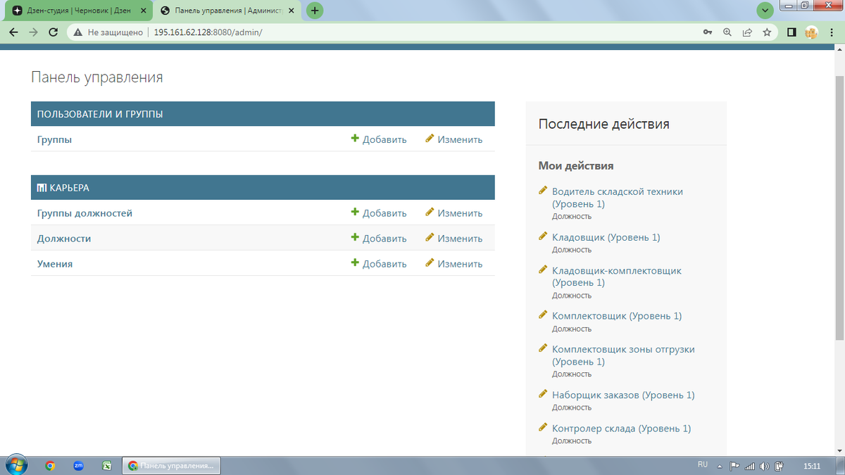 Чтобы настроить конструктор карьеры, нужно сделать личный кабинет для администратора. В моем конструкторе он выглядит так: Группы должностей - обязательно нужны, чтобы объединить должности одной узкой направленности, на которые попасть не так просто. Например, в компании может быть собственное производство колбасы + склад + офис (где есть бухгалтерия, ревизионный отдел, маркетинг и отдел адаптации). Должности, которые относятся к технологам производства и подобные должности, на которые нужно получить образование в ВУЗ, стоит объединить в группу под условным названием "Технологи". Пользователи этого НЕ увидят. Но именно так пользователи получат предупреждение, что не нужно сразу идти на эту должность. Стоит начать с чего-то попроще. Выгода: 1. это убережет пользователь от разочарования ("ого, как много нужно изучить! я точно не справлюсь!"). Должности: нужно внести все основные должности, которые есть в компании. Даже уборщика. Должности внешних совместителей вносить не стоит - он