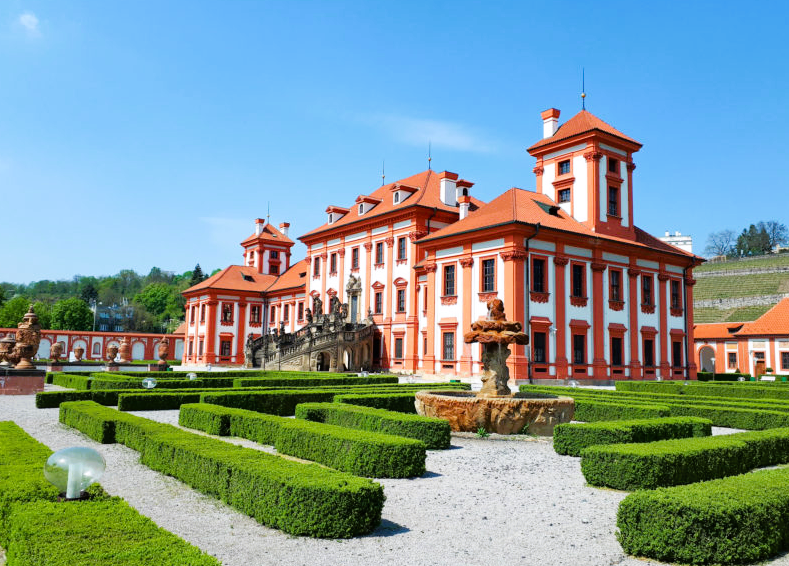 Тройский замок (Trojský zámek) или Замок Троя (Zámek Troja) – это барочный элегантный дворец, первая летняя резиденция в Праге. Располагается он в районе Троя, рядом с Влтавой. Находится он напротив Зоопарка и рядом с Ботаническим садом. Билеты можно купить сразу на 3 объекта, так немного дешевле. Построено здание было в 1679-1685 годах по приказу графа Вацлава Войтеха Штернберка, представителя одного из влиятельнейших чешских дворянских родов. Авторами проекта были Джованни Доменико Орси, а позже Жан-Батист Матеи , строителем был Сильвестро Карлоне. Образцом для подражания послужили классические виллы Италии. Напротив и над замком - виноградники Как обычно, во дворе все красиво, фонтаны... Тройский сад вокруг замка. Все пострижено по немецки аккуратно. Росписью замка занимались художники Карпофоро Тенкалла, Франческо Маркетти и его сын Джованни. Потолочные и настенные фрески главного зала (его называют Габсбургским или Императорским) были созданы фламандскими художниками Абрахамом и