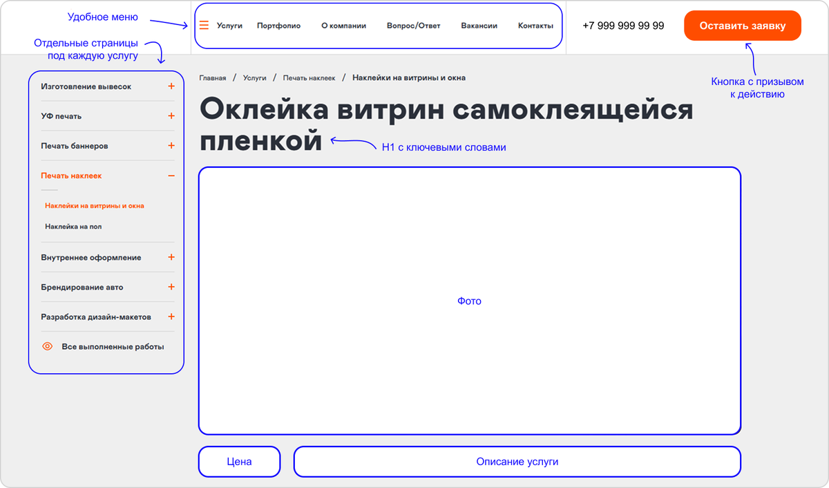 Сайт услуг — это не интернет-магазин, где тысячи карточек товаров. Тут главная задача — понятно объяснить клиенту, что вы делаете, и подтолкнуть его к оставлению заявки.