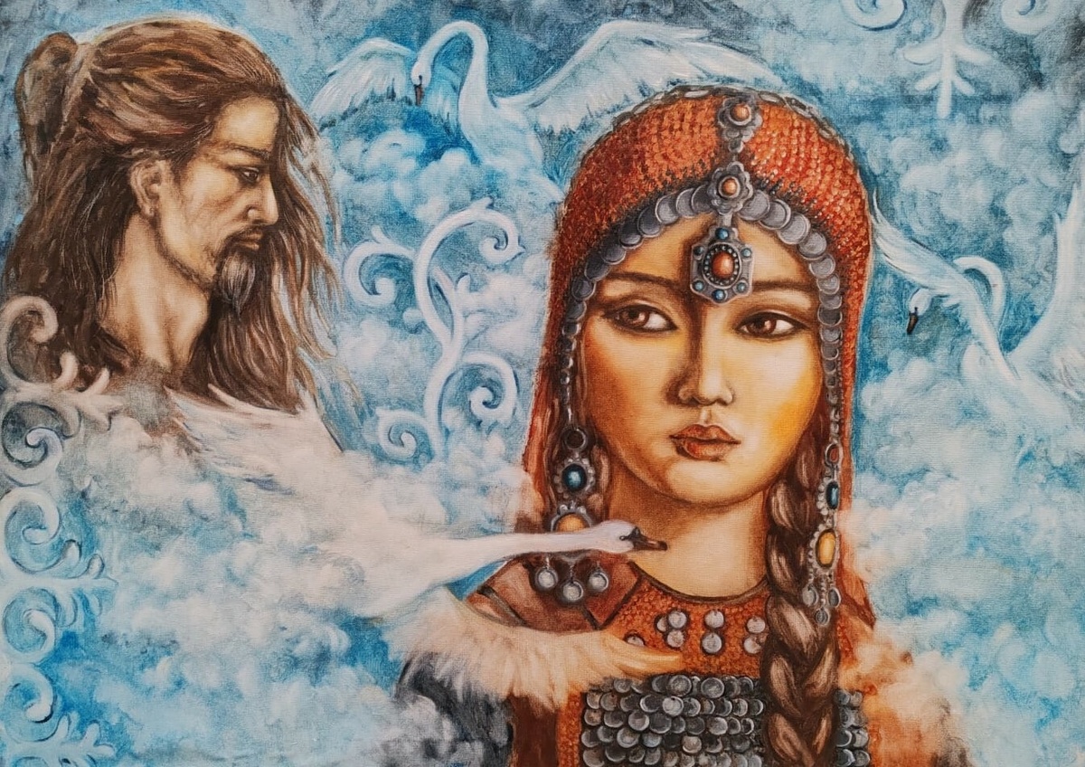 Колоритно изображены древние прародители человечества Янбике и Янбирде на охоте, батыры Урал и Шульген, нежная Хумай, отважная Айхылу на коне и другие персонажи. Ирина Окружнова живет в Ишимбае. Она член Ассоциации художников юга Башкортостана, лауреат республиканских и международных выставок. Трудится художником-конструктором культурно-досугового центра. В данный момент