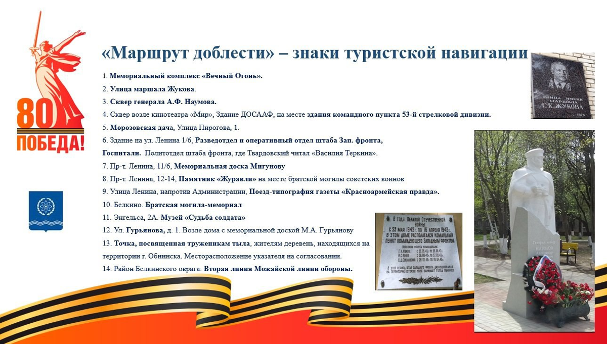 Подготовлен новый туристический маршрут - "Маршрут доблести" в Обнинске. Он охватывает 14 исторических мест: