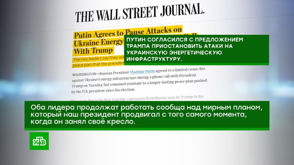 Американская The Wall Street Journal сделала акцент на двух важнейших для американского читателя тезисах. Первый: Владимир Путин позитивно отнесся к инициативам Дональда Трампа. Второй − лидеры двух стран будут работать над мирным планом сообща.