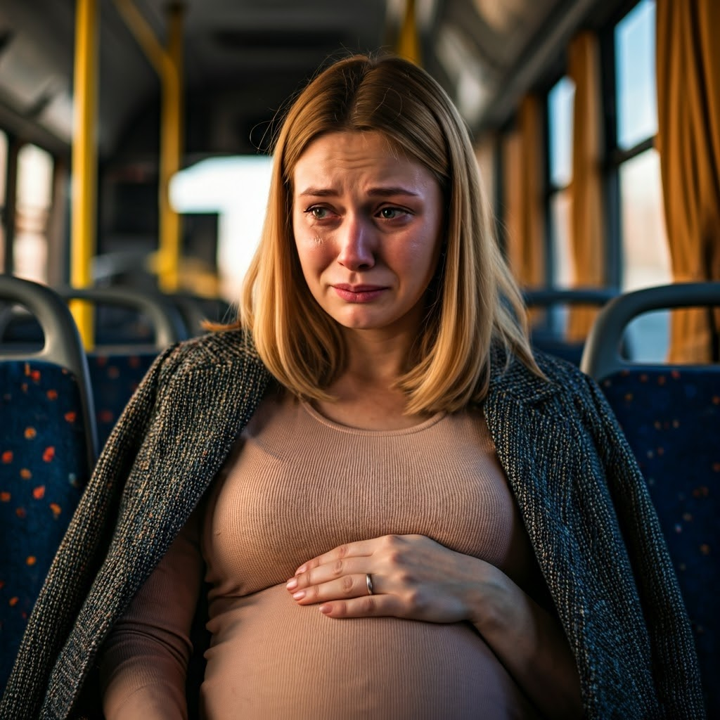 — Помогите, еле шептала незнакомая беременная девушка в конце автобуса.