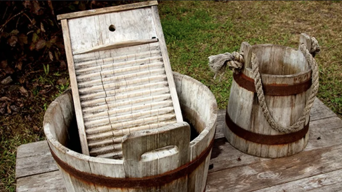 Стирали в ванной комнате, в бассейнах, в корытах. Чтобы помочь домохозяйкам, было блестящее изобретение 1797 года - стиральная доска. Мыльное белье было натерто на ребрах устройства, и вся грязь отвалилась. Название «стиральная доска» сохранилось как метафора для дорог низкого качества.