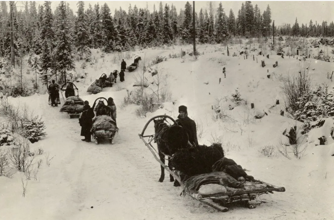 Дорога здесь пересекала торфяное болото,кругом лежали