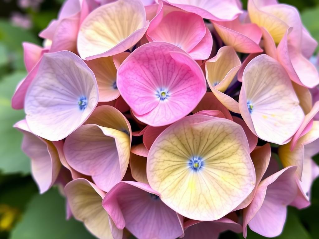 Гортензия черешковая: Обрезка, как правило, не требуется, но можно проводить гигиеническую обрезку и обрезку для ограничения роста. - Изменение цвета соцветий (для гортензии крупнолистной): Цвет соцветий гортензии крупнолистной может меняться в зависимости от кислотности грунта:Кислая почва (pH 5,0–5,5): Голубые или синие соцветия. Для подкисления почвы можно использовать серу, сульфат или специальные удобрения для гортензии с голубыми цветами.