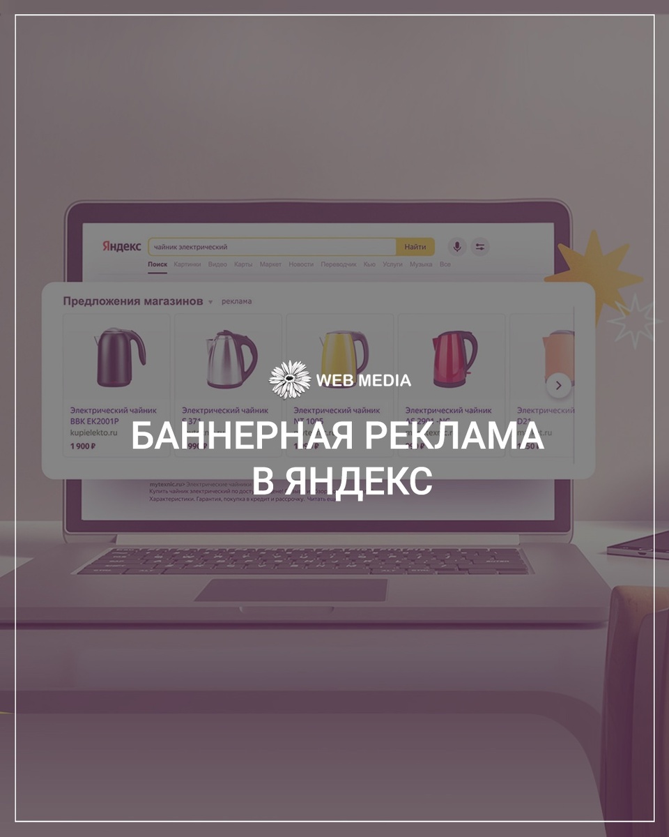 В современном цифровом мире баннерная реклама остается одним из самых действенных инструментов привлечения клиентов. Баннерную рекламу можно настроить для показов в РСЯ (Рекламной Сети Яндекса) и на сайтах и в приложениях партнеров Яндекса. Разнообразие форматов, от статичных изображений до интерактивных видеороликов, позволяет выбрать оптимальный вариант конкретно для вашей целевой аудитории. Есть возможность таргетинга по интересам, географическому положению и другим параметрам. Основная цель баннера — привлечь внимание пользователя и побудить его перейти на сайт рекламодателя или выполнить определённое действие (покупка, регистрация, подписка) Примеры баннерной рекламы в Яндексе: 🌸 Товарные объявления - показываются пользователю при поиске определенного товара в виде карусели из карточек предложений разных магазинов в товарной галереи площадки. 🌸 Текстово-графические объявления - алгоритм сам подбирает фото, видео и вариант текстового блока под каждого пользователя и посетителя ва