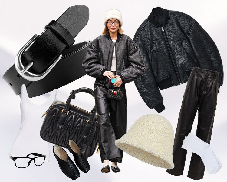 29-летняя Джиджи Хадид прилетела в Париж на торжественный ужин-аукцион Louvre’s Grand Fashion Dinner в рамках Недели моды. И если на мероприятии ангел Victoria’s Secret получала комплименты в футуристическом асимметричном платье, сияние которого ослепило не одного журналиста, то в обычной жизни девушка предпочла не выделяться. Папарацци застали модель на прогулке по городу. Главным материалом для образа послужила кожа: для брюк-бананов — гладкая, для оверсайз бомбера — зернистая. Маленькая стеганая сумочка, в которую не помещается даже телефон, выполняет чисто декоративную функцию — ее Белла украсила небольшим красным подвесом. Балетки — тренд весны 2025 — классно смотрятся с белыми носками на контрасте. Получился простой и понятный образ ахромат, который, тем не менее, хочется рассматривать из-за микса фактур. Вязаная шапка, кстати, выполняет ту же задачу: добавляет нежности довольно брутальной коже. Похожий винтажный бомбер с круглым вырезом и карманами нашелся у бренда Halfboy. Его