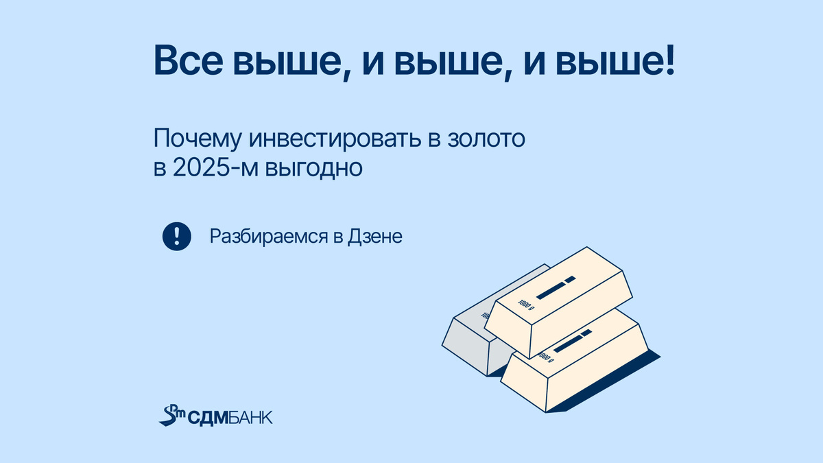 В марте стоимость золота превысила $3000 впервые в истории. Это еще раз подтвердило его репутацию надежного актива: не ржавеет, не выходит из моды и стабильно растет в цене. Другие активы могут резко дешеветь, но золото держится уверенно. Давайте разберемся, почему оно по-прежнему выгодно и какие есть способы вложиться в этот драгоценный металл. Почему золото остается востребованным Предсказать точную цену золота в 2025 году не сможет ни один эксперт. Но есть несколько факторов, которые поддерживают его инвестиционную привлекательность. При этом золото не про быстрый доход. Если хочется вложить деньги так, чтобы можно было быстро снять прибыль, стоит рассмотреть более консервативные инструменты, например банковские вклады. Как можно инвестировать в золото Есть несколько способов вложить деньги в драгоценный металл. Каждый из них имеет свои плюсы и минусы, и выбор зависит от личных предпочтений. Покупка золотых слитков Этот вариант подходит для тех, кто хочет держать инвестиции в руках.