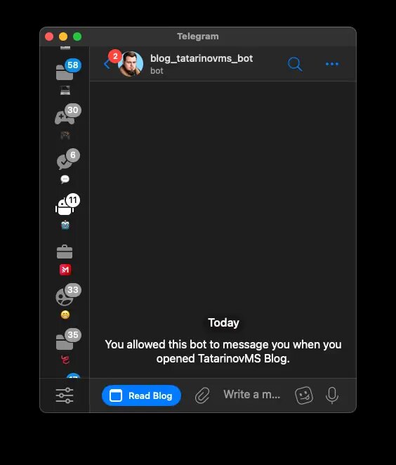 базово открываться мой блог в мини-апп в Telegram. И чтобы был доступен