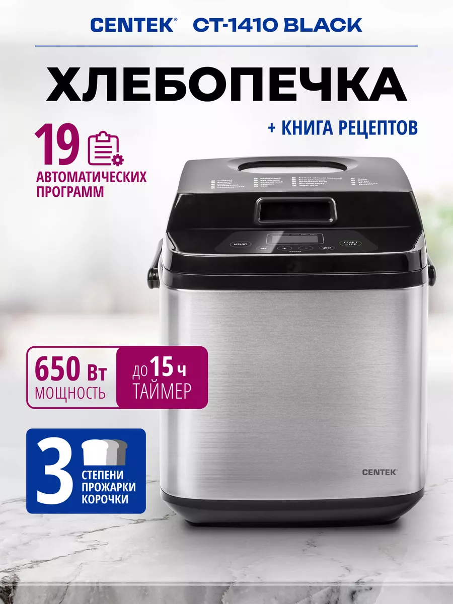 CENTEK CT-1410 BLACK - хлебопечка с интуитивным управлением