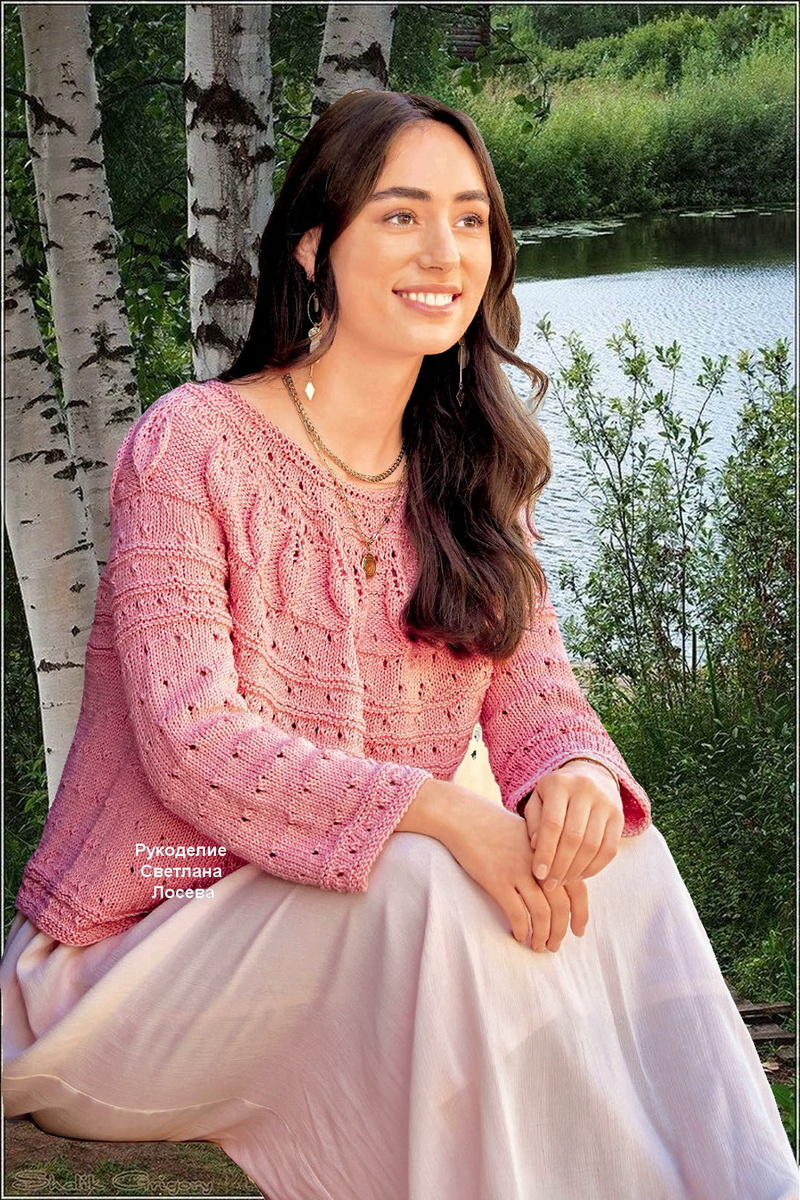 В мире вязания ажурные узоры с листьями занимают особое место, покоряя сердца рукодельниц своей изящной красотой и универсальностью. Этот растительный орнамент можно встретить практически в любом вязаном изделии – от элегантных шалей до повседневных свитеров, от изысканных топов до уютных пледов. Модель 1 Популярность узоров с листьями обусловлена несколькими важными факторами. Во-первых, их универсальность поражает: они великолепно смотрятся как в тонких ажурных шалях из мохеровой пряжи, так и в плотных свитерах из шерстяных ниток. Модель 2 Растительные мотивы прекрасно адаптируются под разные техники вязания, от простой лицевой глади до сложных ажурных мотивов. Модель 3 Во-вторых, узоры с листьями обладают удивительной способностью преображать даже самое простое изделие. Достаточно добавить небольшую веточку с листочками на однотонный топ или юбку, и вещь мгновенно приобретает особый шарм и индивидуальность. Это делает их идеальным выбором как для начинающих вязальщиц, так и для опы