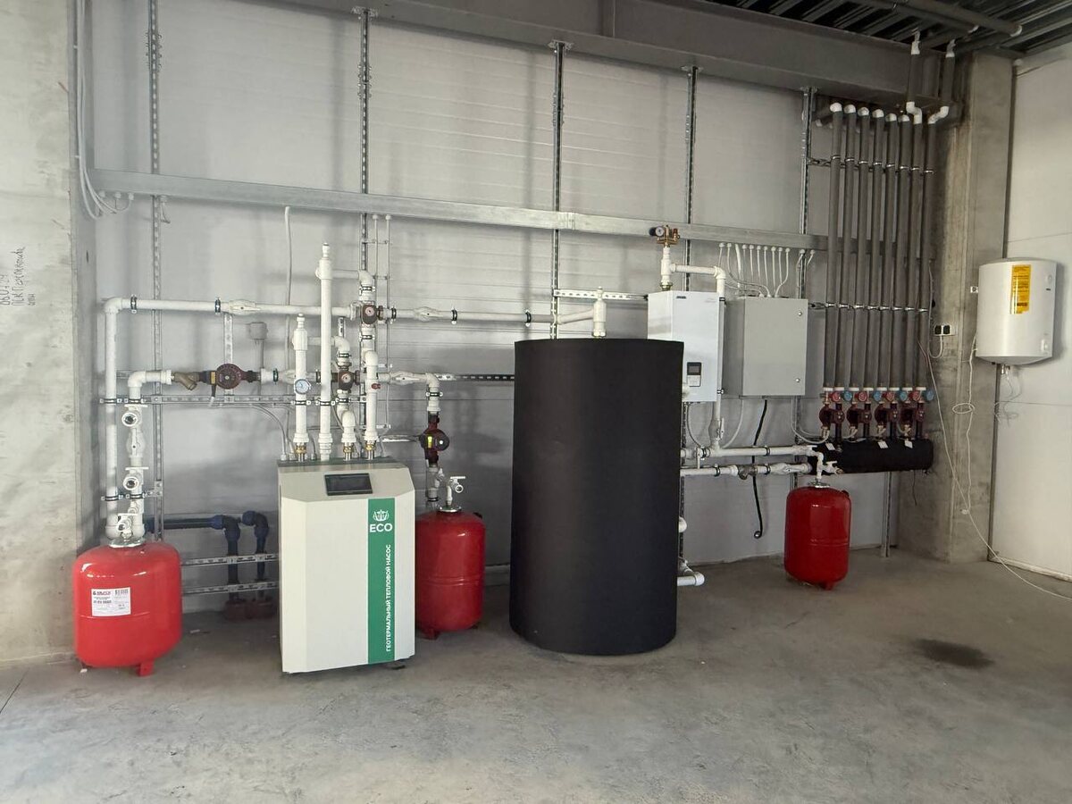 Тепловые насосы — это эффективное и экологичное решение для отопления и кондиционирования помещений. Многих интересует, как же работает это система? Давайте разберемся🧐 Как ЭТО работает? 🌍 Геотермальные скважины: Прокачиваемый по трубам теплоноситель (пропиленгликоль) забирает тепло из земли, которая всегда имеет стабильную температуру, даже когда на улице -32°C в грунте +5°C. 🛠️ Тепловой насос: Теплоноситель поступает в теплообменник, где тепло передается в систему. Компрессор сжимает это тепло, увеличивая его температуру до 100°C, после чего оно передается в систему отопления здания. 🌞 Зимнее/летнее использование: Зимой система работает на отопление, а летом — на охлаждение! Просто меняем направление работы теплового насоса. 🔄 Дублирующая система и независимость: Все насосы подключены к одному коллектору, но работают независимо друг от друга. Если вдруг один выходит из строя, остальные продолжают работать. Это обеспечивает бесперебойное отопление и кондиционирование зда