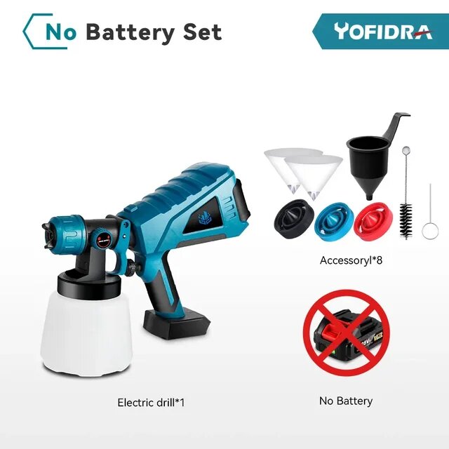 Беспроводной электрический пистолет-распылитель Yofidra - это идеальный инструмент для тех, кто ценит качество и удобство в процессе покраски. С объемом чашки в 1000 мл и передовой технологией HVLP, этот краскопульт обеспечивает равномерное распределение краски, позволяя добиться профессиональных результатов без лишних усилий. Легкий и эргономичный дизайн делает его удобным в использовании в любых условиях, а беспроводная система обеспечивает свободу перемещения, избавляя от необходимости искать розетку или борьбу с кабелями.