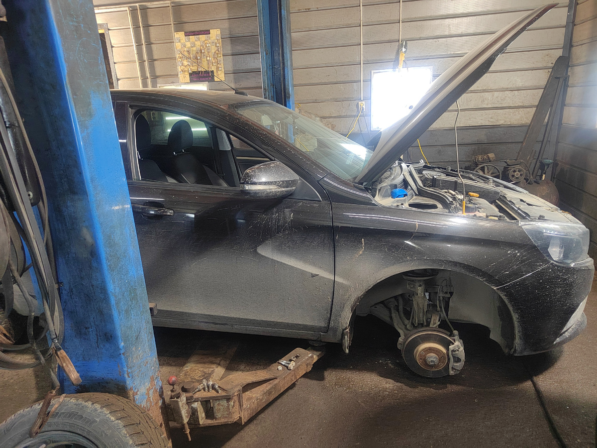 Всем доброго дня! На дворе уже март, но февраль запомнился мне борьбой с надоедливым стуком в подвеске. История началась месяц назад, когда я понял, что замена стоек стабилизатора не помогла: с левой стороны по-прежнему раздавался противный звук на каждой кочке. Особенно он досаждал во время ночных поездок в такси — стук буквально выводил из себя. После осмотра подкапотного пространства и проверки люфтов стало ясно: опорному подшипнику пришел конец. Ездить дальше в таком состоянии было нельзя — проблему нужно было срочно решать. Диагностика и выбор запчастей Покопавшись в интернете, я убедился, что с этой проблемой сталкиваются многие владельцы Lada Vesta первой генерации (1G). Стук опорных подшипников — частая «болячка» даже на машинах с пробегом до 20 тысяч км. Решил действовать по плану: 1. Подобрать качественные запчасти. 2. Позвонить проверенному мастеру. Выбор запчастей: - Опора амортизаторной стойки ROSTECO 20655_RO2 — 2 шт. (бывший БМРТ, качество на уровне, цена приятная). - Оп