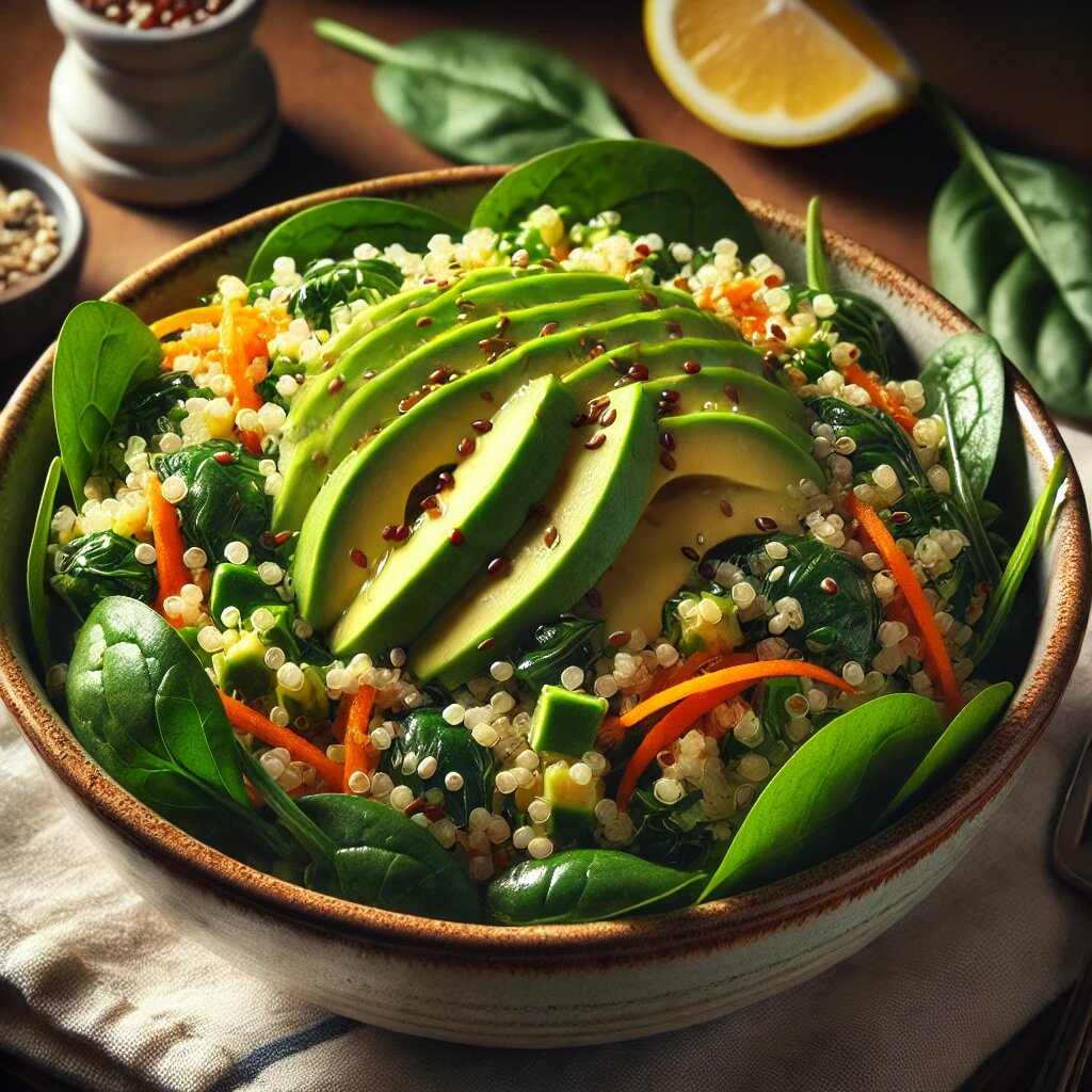 Если вы ищете идеальное сочетание белка, полезных жиров и клетчатки, этот салат – то, что нужно! Он питательный, лёгкий, но при этом сытный, идеально подходит для обеда или ужина. А сочетание нежного авокадо, киноа и свежего шпината придаёт блюду потрясающий вкус и пользу для организма! 💚🥑 ✔ ½ стакана киноа