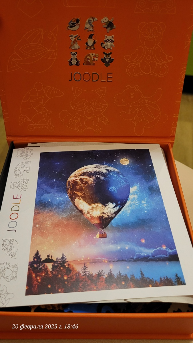 За свою жизнь уже и не сосчитать какое количество пазлов было собрано, не то чтобы я их собираю каждый день, но иногда, в свободное время, люблю пособирать. Что-то правда так и осталось недособранным, просто был потерян интерес и всё. Обычно я их собираю, любуюсь, а потом разбираю и раздаю. Не склеиваю, не вешаю на стену, ничего такого. Тут увидела на озоне деревянные пазлы! И как мне их срочно захотелось. Такие они яркие, и картины интересные, и фигурки такие затейливые. Глаза разбегаются, все охота купить. Для начала выбрала один набор, кое-как дождалась, когда наконец то придёт заказ. Прискакала домой и быстрей смотреть. Понравилось всё! И качество самих деталей, и цветопередача, и даже упаковка достойная. Прям на подарок не стыдно, тому, кто такое любит. Естественно, я как давай сразу собирать. Пазл из 200 деталей. Размер 22х27 см. Не очень большой, как раз за вечер, под сериал, часа за 4 всё собрала: Стоил он на тот момент около двух тысяч рублей, сейчас почему-то аж три! Мне е