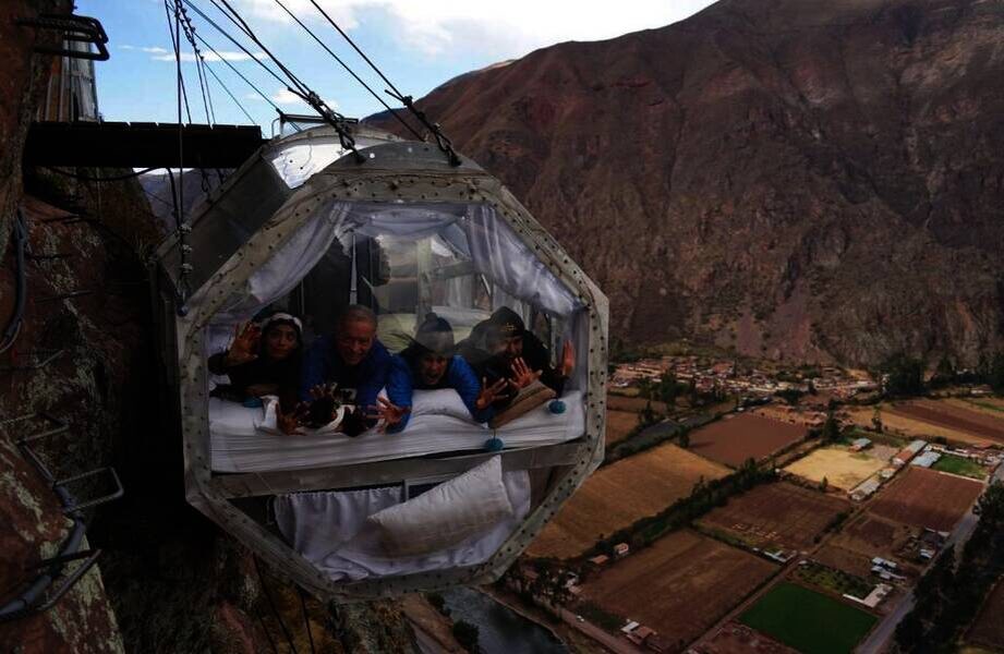 Примерно в часе езды от Куско среди гор спрятаны поразительные апартаменты Skylodge Adventure Suites. Это место привлекает смельчаков со всего света, и журналисты уже успели прозвать его «самым страшным отелем» земного шара. Конечно, на это есть основание: его комнаты закреплены прямо на горе, а под полом ― пропасть.