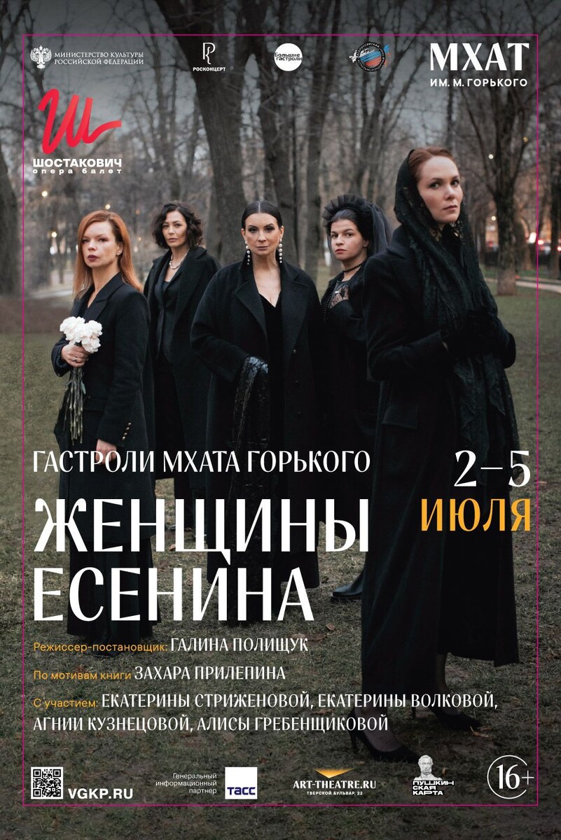 Самый посещаемый спектакль Москвы последних двух лет. По моей книге. Великолепная постановка. К моему юбилею показы в Самаре. Спешите, что называется, видеть. Билеты купить ЗДЕСЬ. Театр Вахтангова объявляет: В мае вновь принимаем в гостях спектакль МХАТа имени М. Горького «Женщины Есенина». На Основной сцене Театра Вахтангова: 2, 3, 4, 5 и 6 мая. Постановка Галины Полищук, основанная на книге Захара Прилепина, погружает зрителей в мир знаменитого поэта, позволяет посмотреть на его жизнь глазами женщин, любивших его и повлиявших на его творчество. В главных ролях: Екатерина Стриженова, Алиса Гребенщикова, Екатерина Волкова, Агния Кузнецова, Андрей Вешкурцев. С момента премьеры «Женщин Есенина» посмотрели более 240 тысяч зрителей в Москве, Новосибирске, Санкт-Петербурге и Красноярске. Билеты здесь. Книга ЗДЕСЬ.