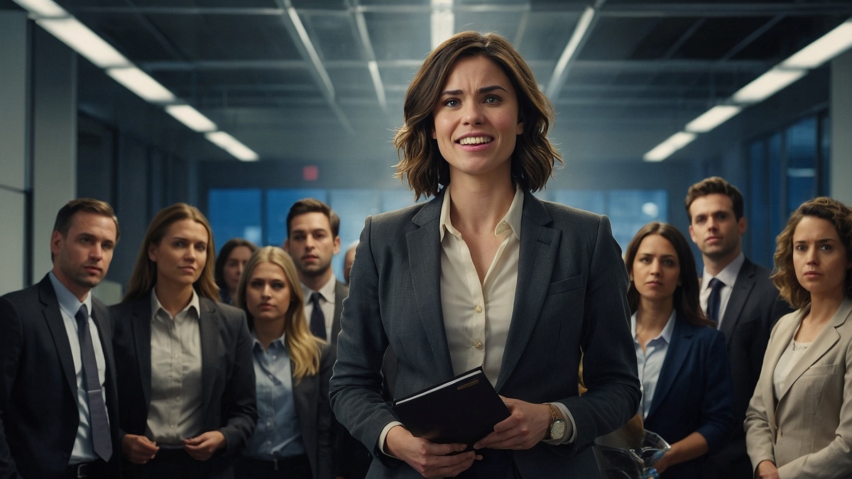Вечером она собрала сотрудников в переговорной — двадцать человек, от уборщиков до менеджеров. Сергей стоял посреди комнаты, потея, теребя куртку. Катя наблюдала из угла, держа чашку чая.